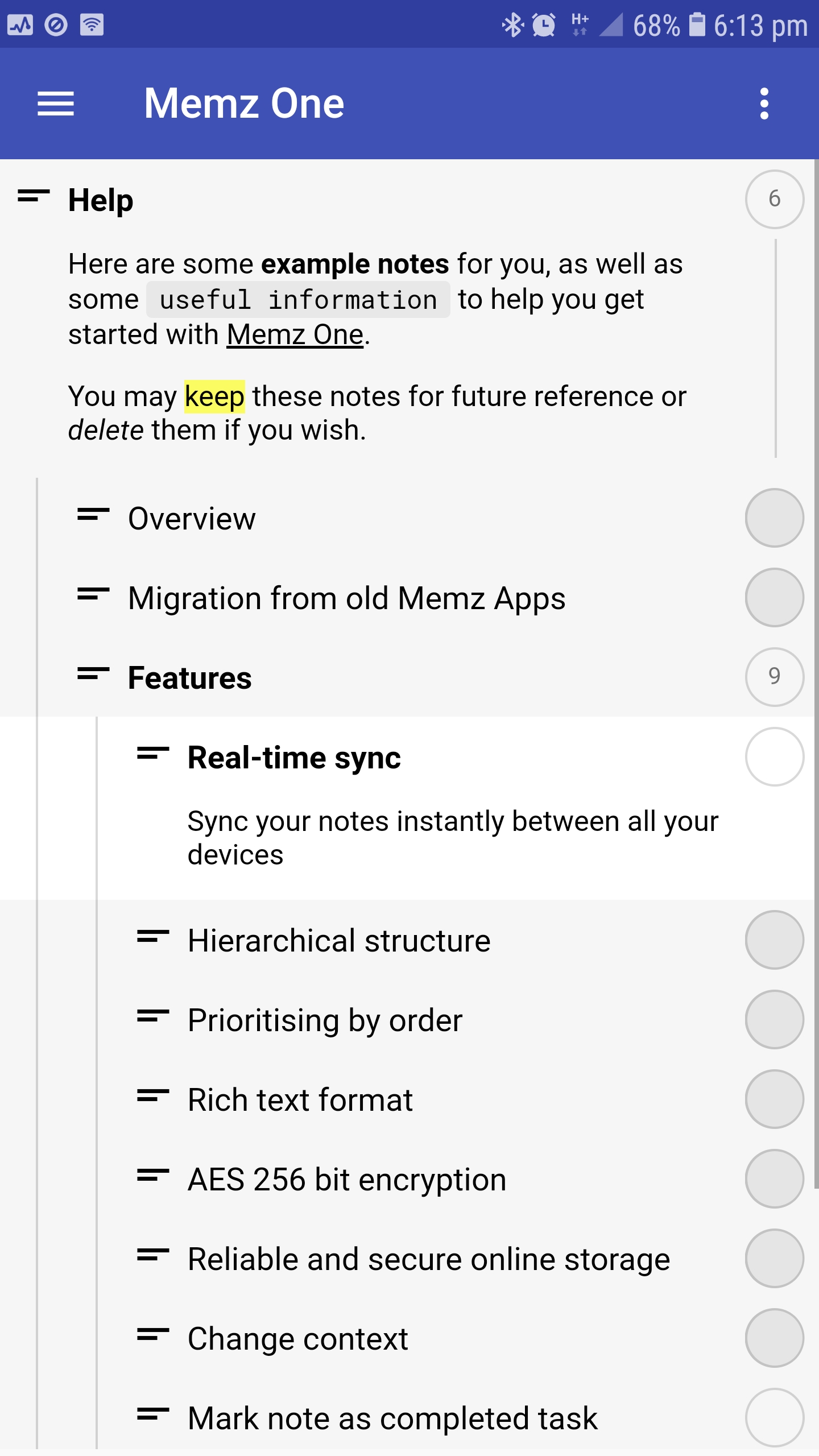I have been using Memz for several years now and it just keeps getting better! I use Memz for literally all my information management needs! From calendar to meeting notes, diary to contacts, business management to prayerlist, Memz handles it all and looks fantastic as well! Memz adapts to whatever your note taking needs may be. I have over 3000 notes, each in its proper place due to its unique hierarchy method. Is multi word search and user friendly note placement makes it easy to find whatever I need, all without compromising the apps performance. Encrypted security allows me to know my sensitive information is safe and secure! It just doesn’t get any better than that!